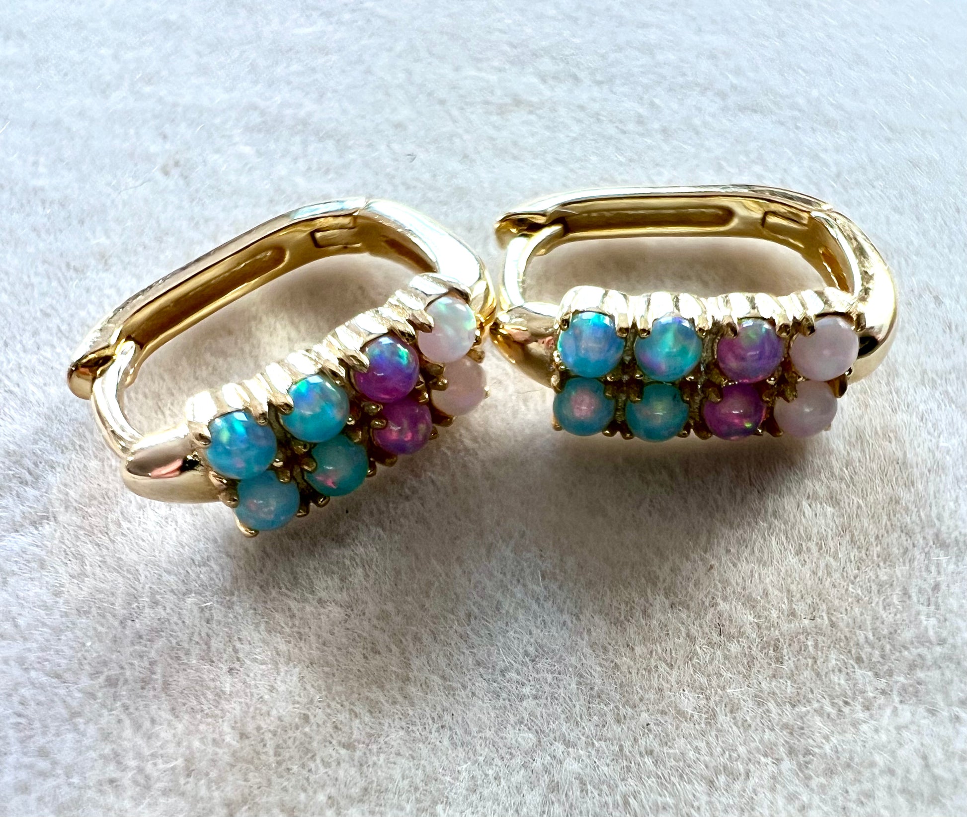 Blue & Pink Lab Opal Ombre & 18kt Gold Vermeil Huggies