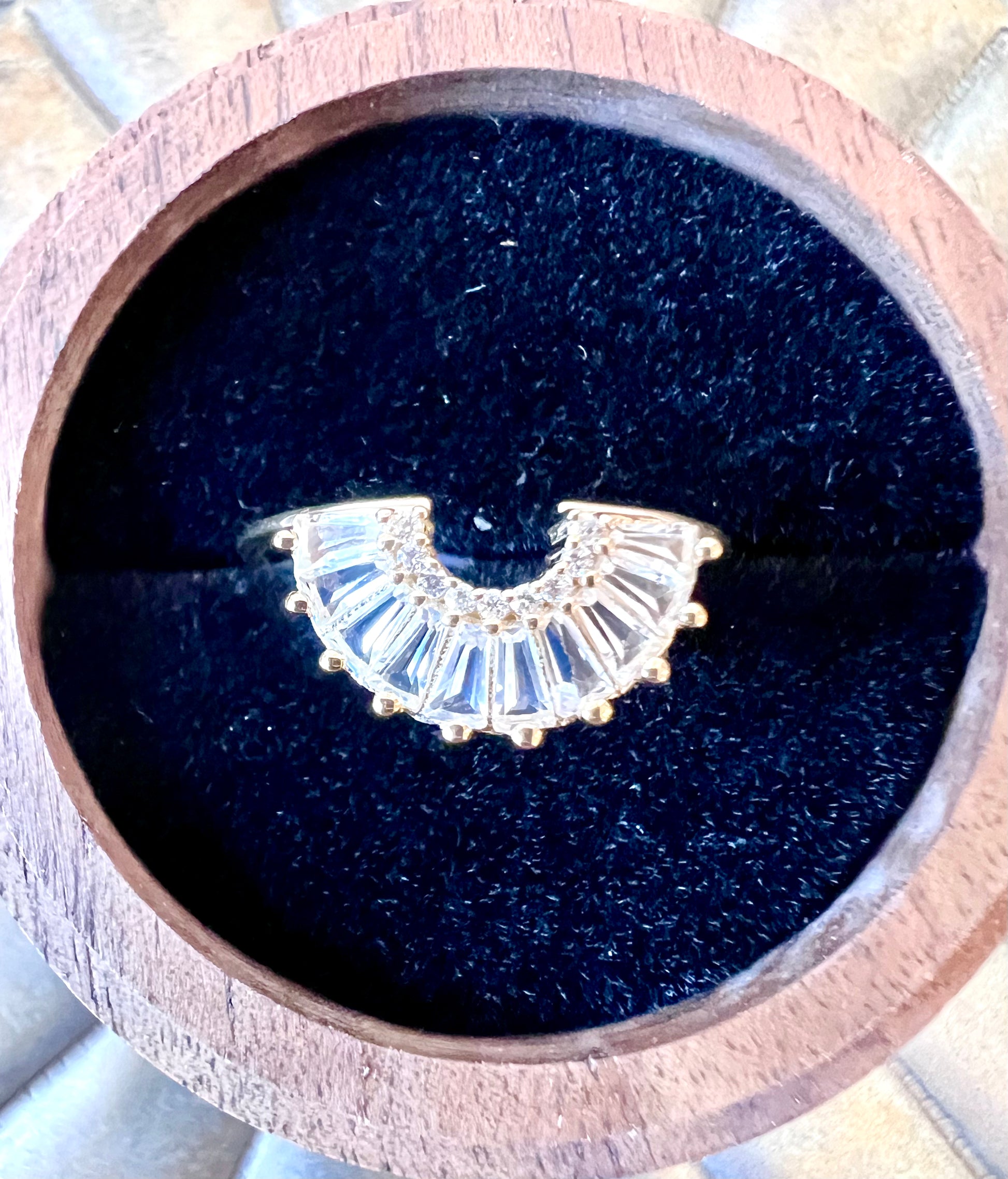Diamond & White Topaz Baguette Solid 14kt Gold Arc Ring - Size 6