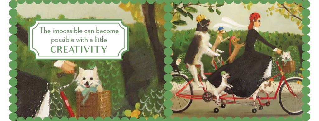 Whimsy meets warmth in this 15oz porcelain mug, featuring Canadian artist Janet Hill’s playful illustration of Dog Governess Miss Moon taking her dogs out for a creative bike ride. “The impossible can become possible with a little creativity.” Perfect for any dog-lover’s morning ritual, it brings a gentle nudge of delight with every sip.
