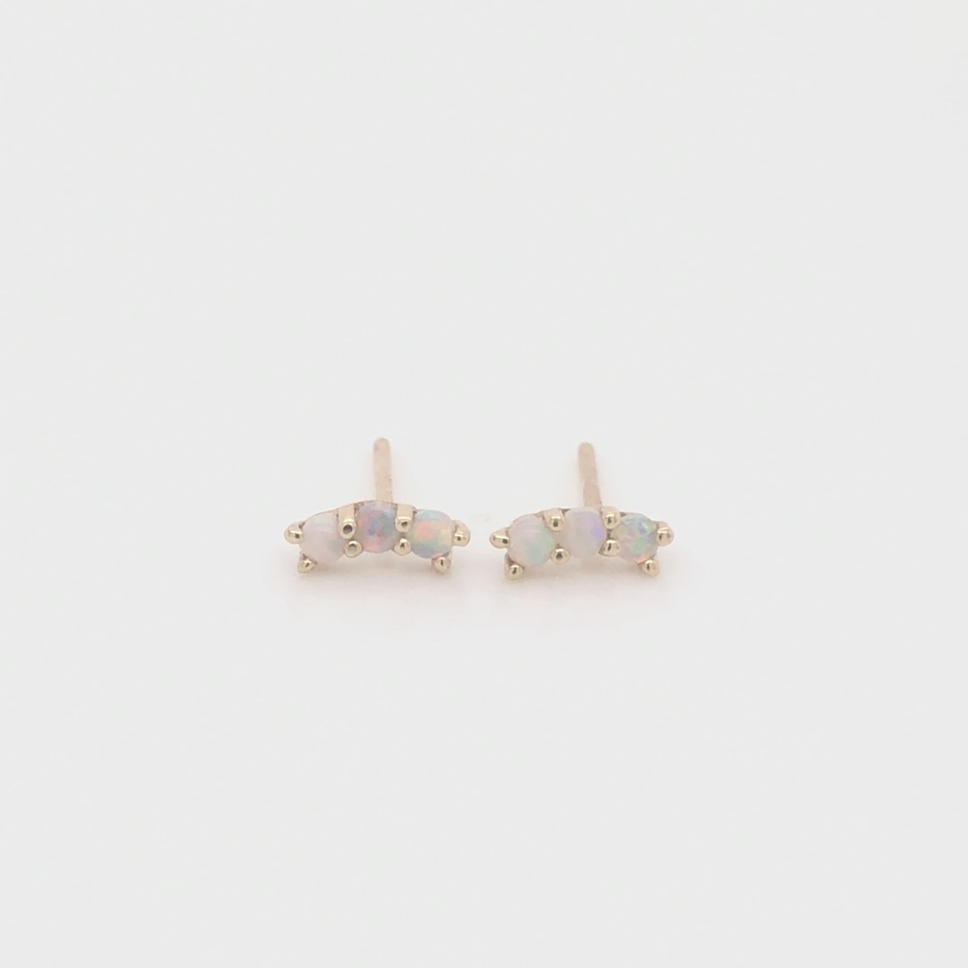 Refined and luminous, the Ethiopian Trio Opals Solid 14kt Gold Stud Earrings are crafted in solid 14kt gold and feature Ethiopian opals in each earring. Designed for everyday elegance, these petite studs bring a polished glow of opal color with timeless sophistication.