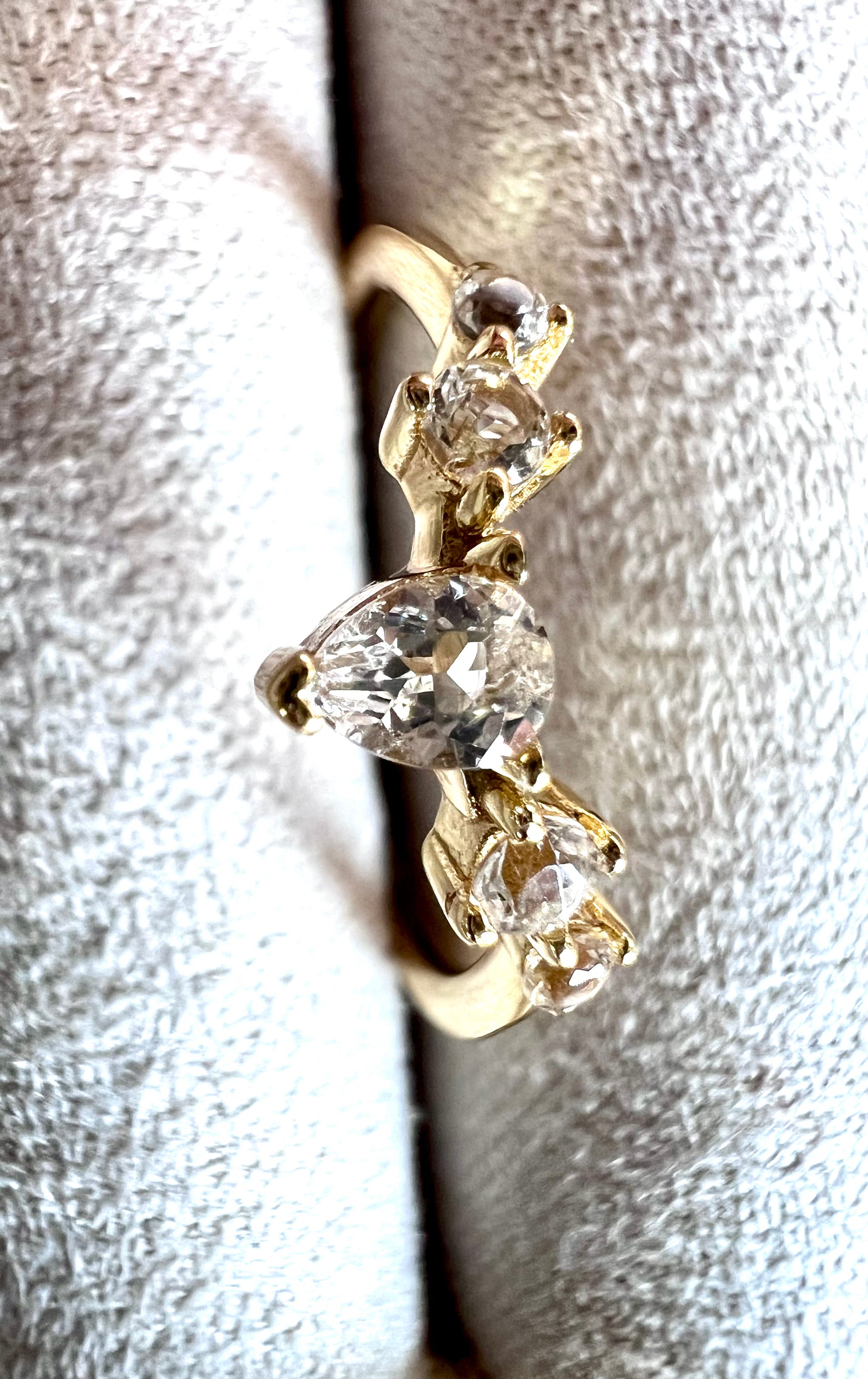 Five White Topaz Ring in 14kt Gold, Size 6
