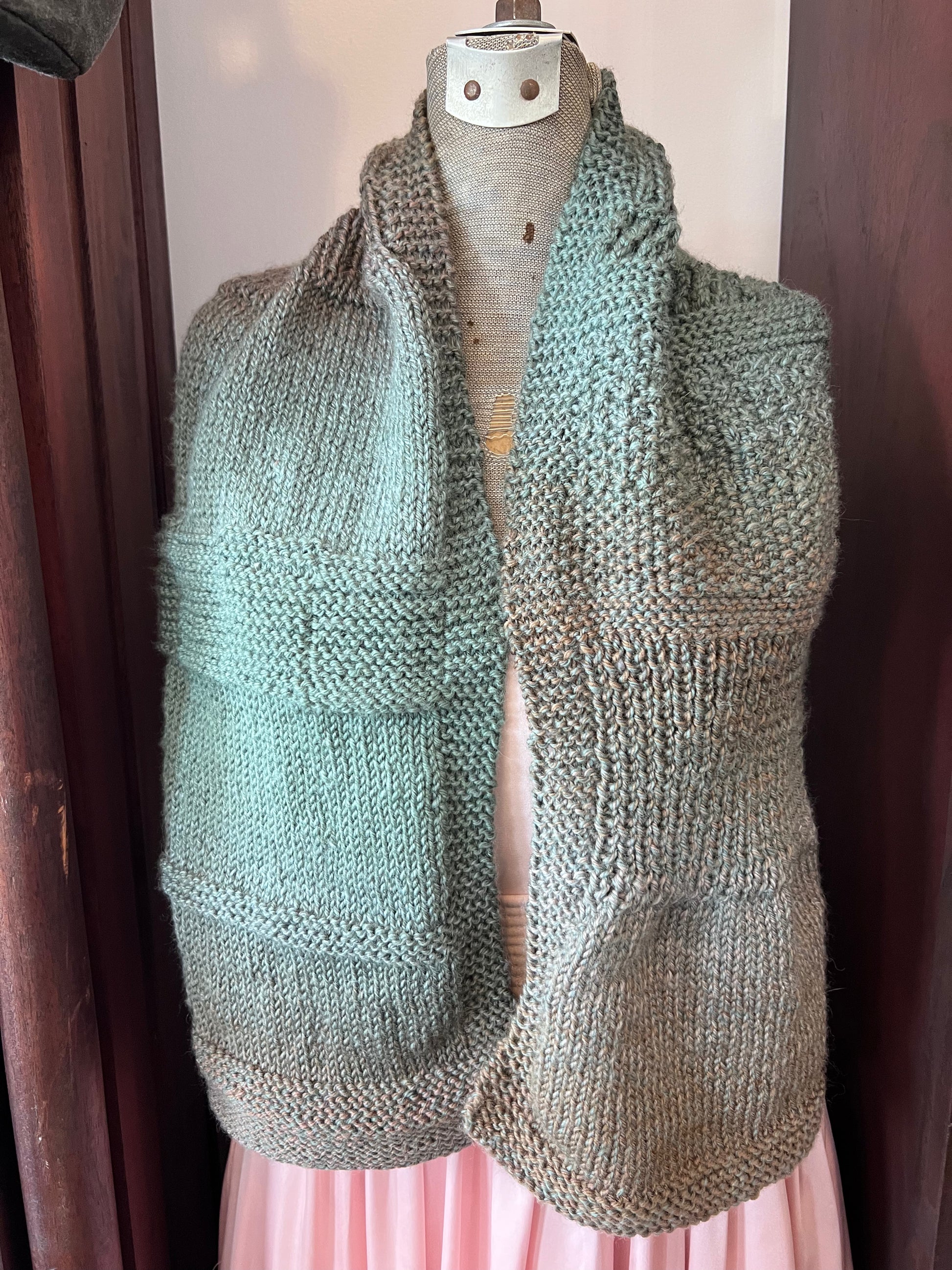 Handknit by Georgia Rodney, this scarf is a beautiful handwork meant to wear every day. Made from the softest wool, it features the colors of rich moss green with a few areas in a moss green-earth tone combination. The scarf has an intricate and unique alternating knit patterns that add depth and subtle movement. A timeless scarf that speaks to the beauty of slow craft and considered design—each stitch a moment, each row a story.