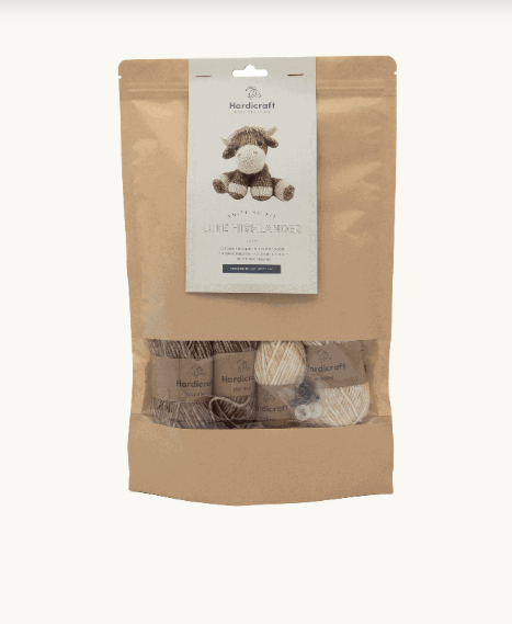 The Highlander Cow Stuffed Animal Knitting Kit has a soft, shaggy texture and irresistibly sweet face. This little cow is destined to be a favorite cuddle buddy. The kit includes a detailed pattern, premium mixed yarn, and all the materials you need to get started (2.5mm knitting needles not included).