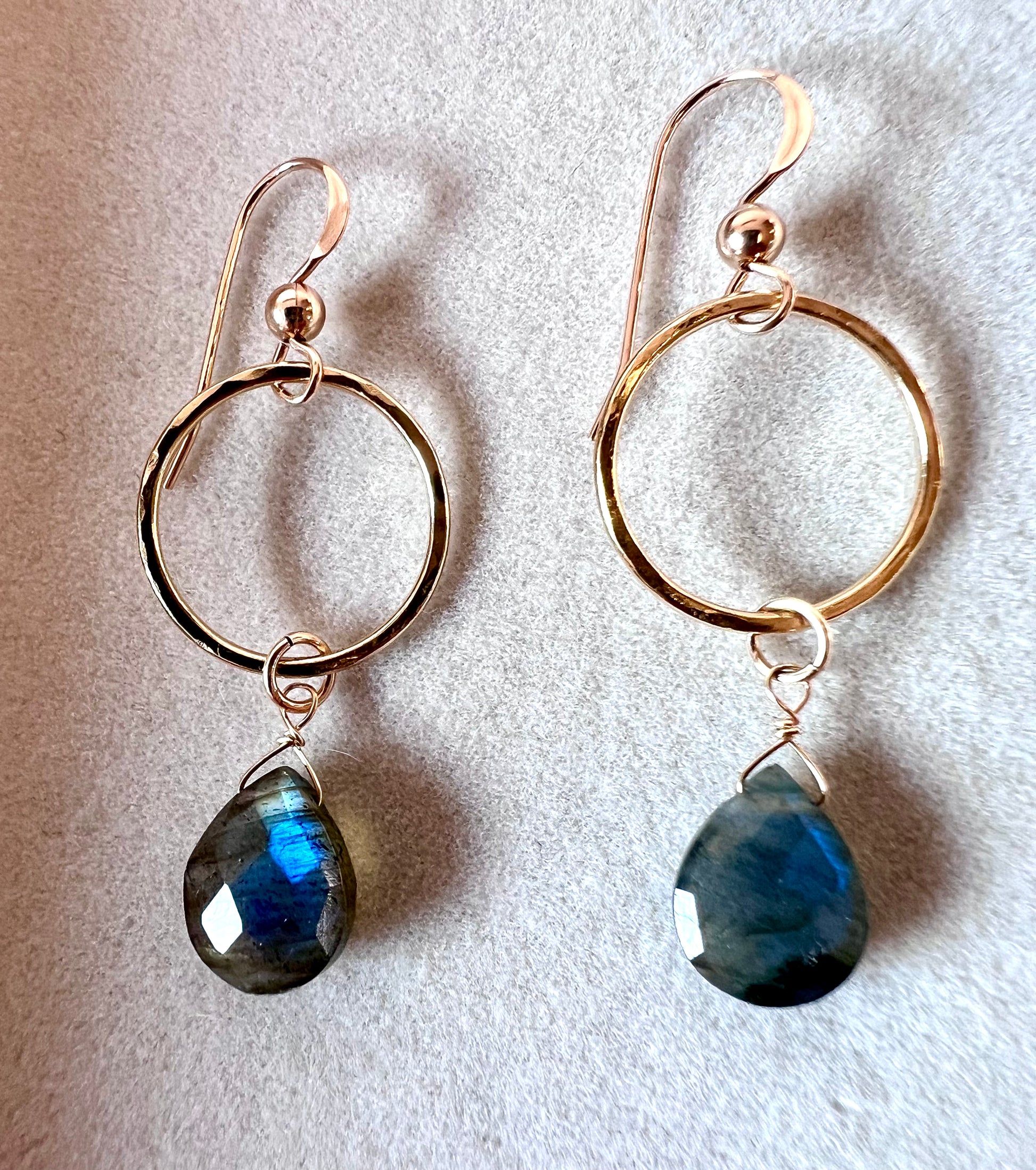 Dainty yet full of character, these Labradorite Earrings feature luminous gemstones suspended from a delicate 14K gold-filled hoop.