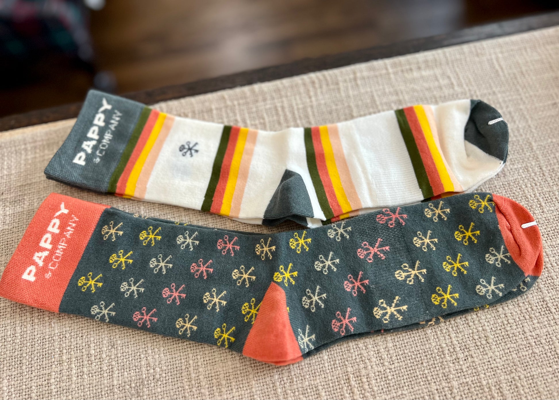 Because even your feet deserve a good story- Pappy & Company Keys & Stripes Sock Set - 2 pairs! These retro-inspired socks bring a playful nod to Pappy’s legacy. Cool, comfortable, and just the right amount of bold. Made in a breathable Coolmax blend, they’ve got the easy wear of an everyday staple with the personality of a collector’s piece.