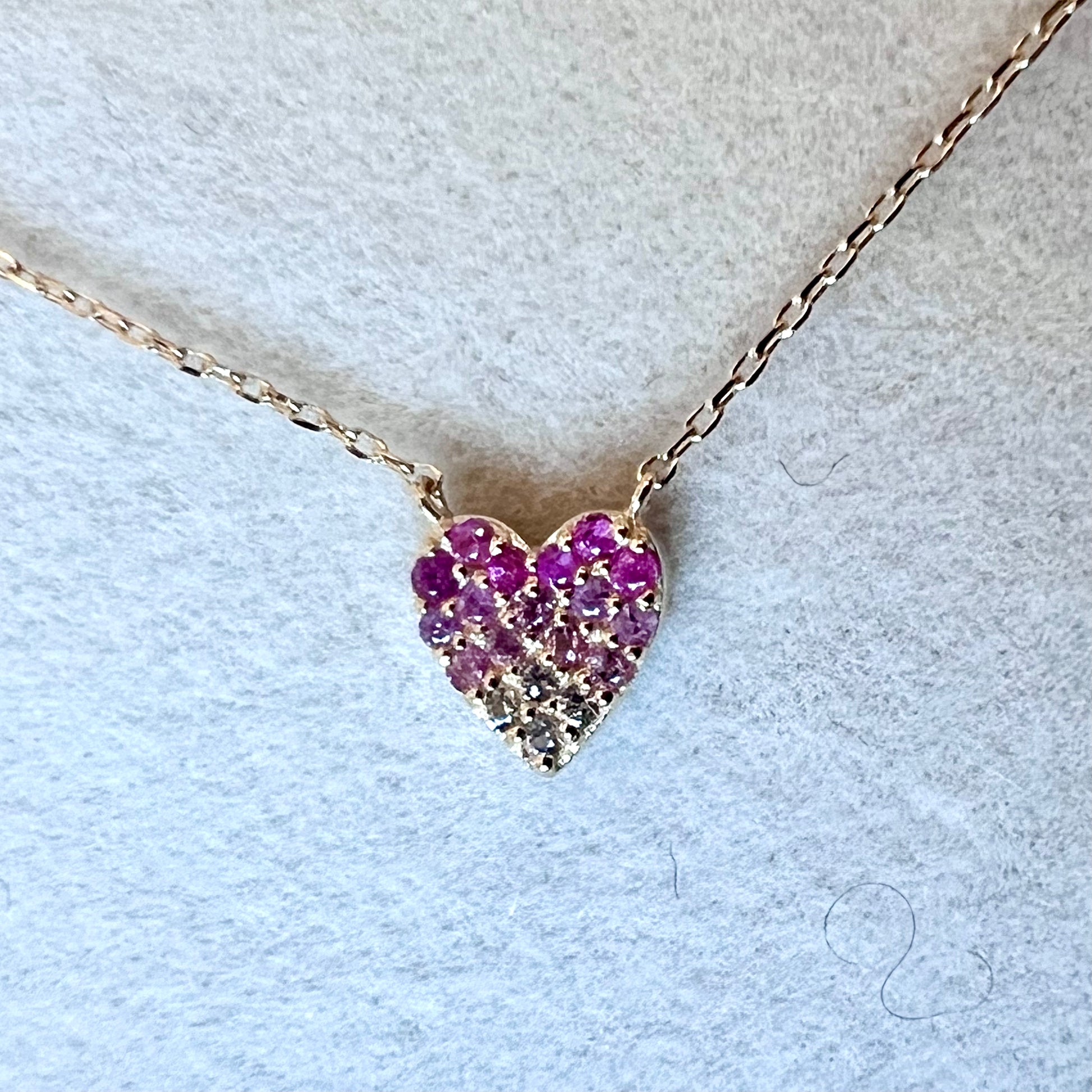 Pink & White Sapphire Heart Solid 14kt Gold Necklace