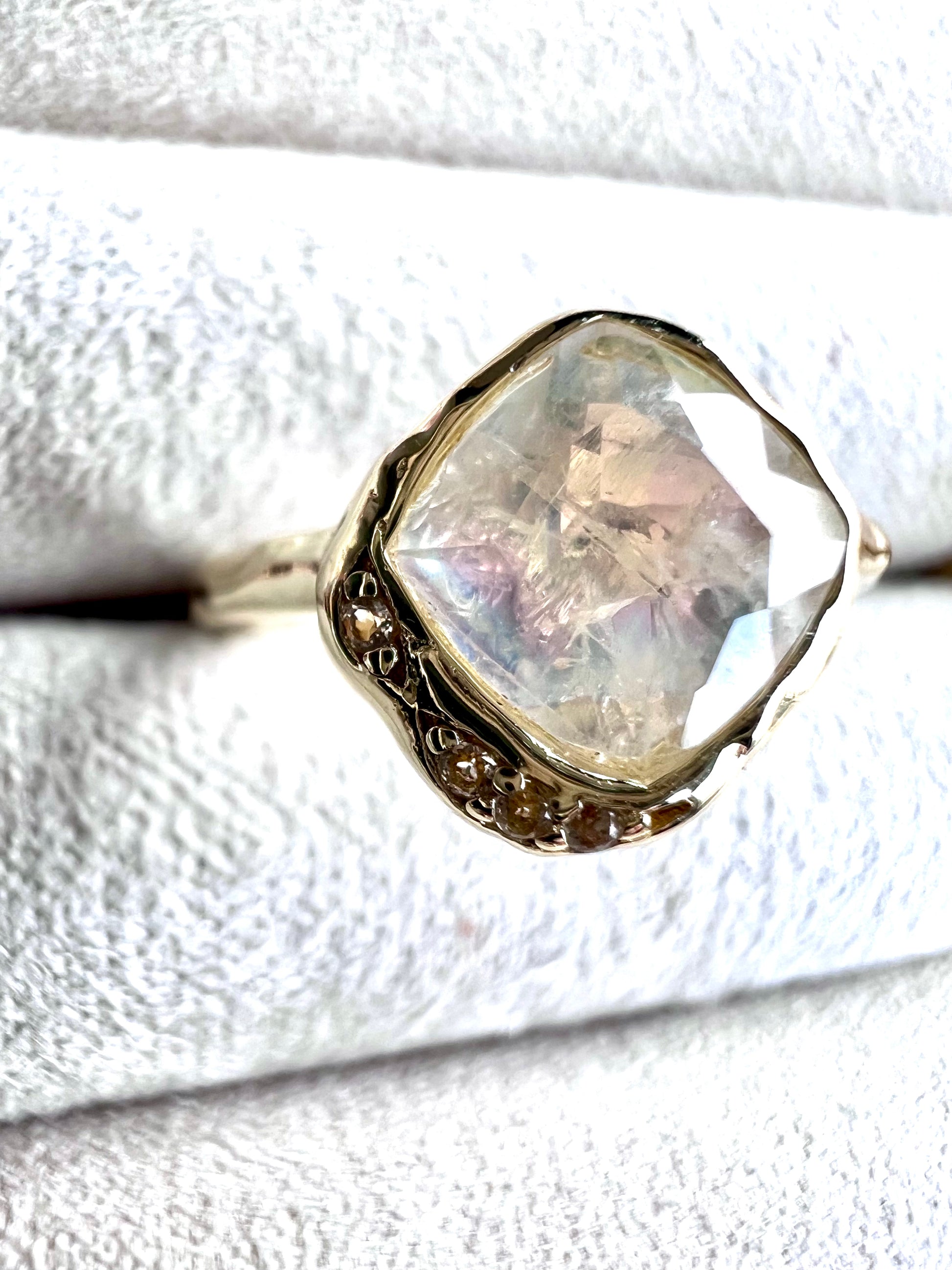 Rainbow Moonstone & White Topaz 14kt Gold Vermeil Ring - Size 5