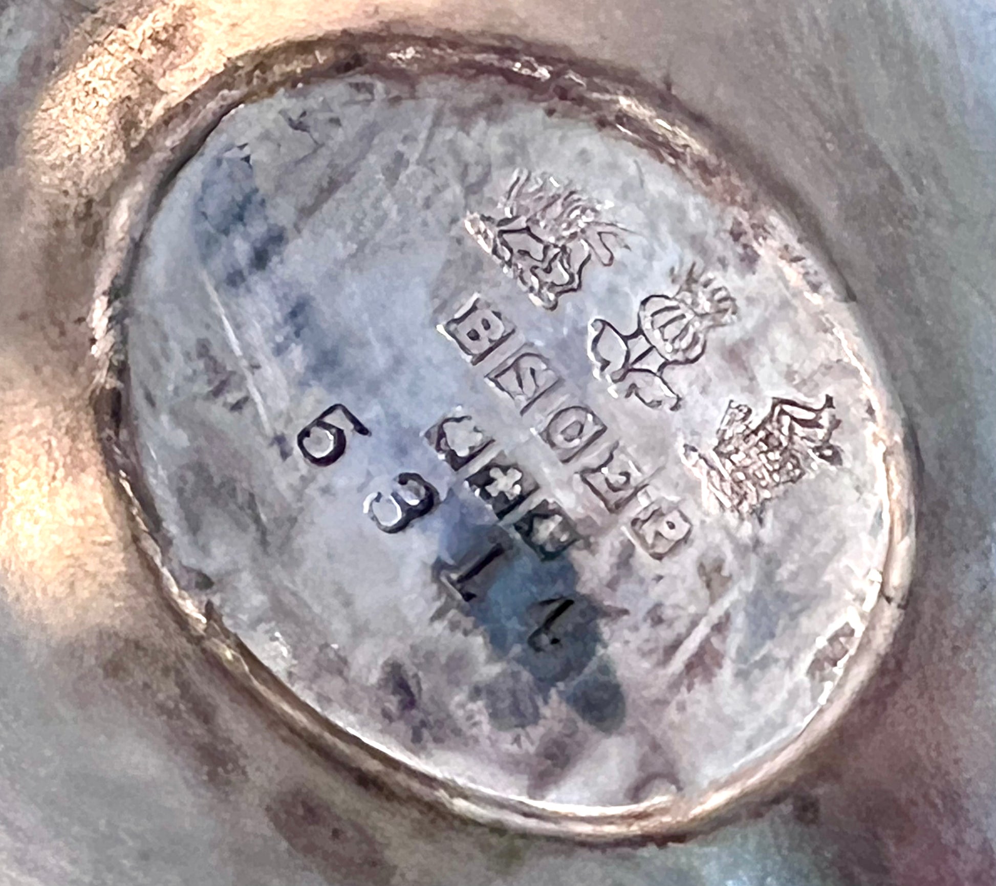 Its underside bears the stamp BSNCP 5314, a maker’s mark indicating British Standard Nickel Copper Plate, a traditional base metal commonly used in fine silverplated wares of the early 20th century. The number denotes its pattern or production reference. Time has left it with a lovely patina, making it as much a piece of history as a functional vessel for tea.