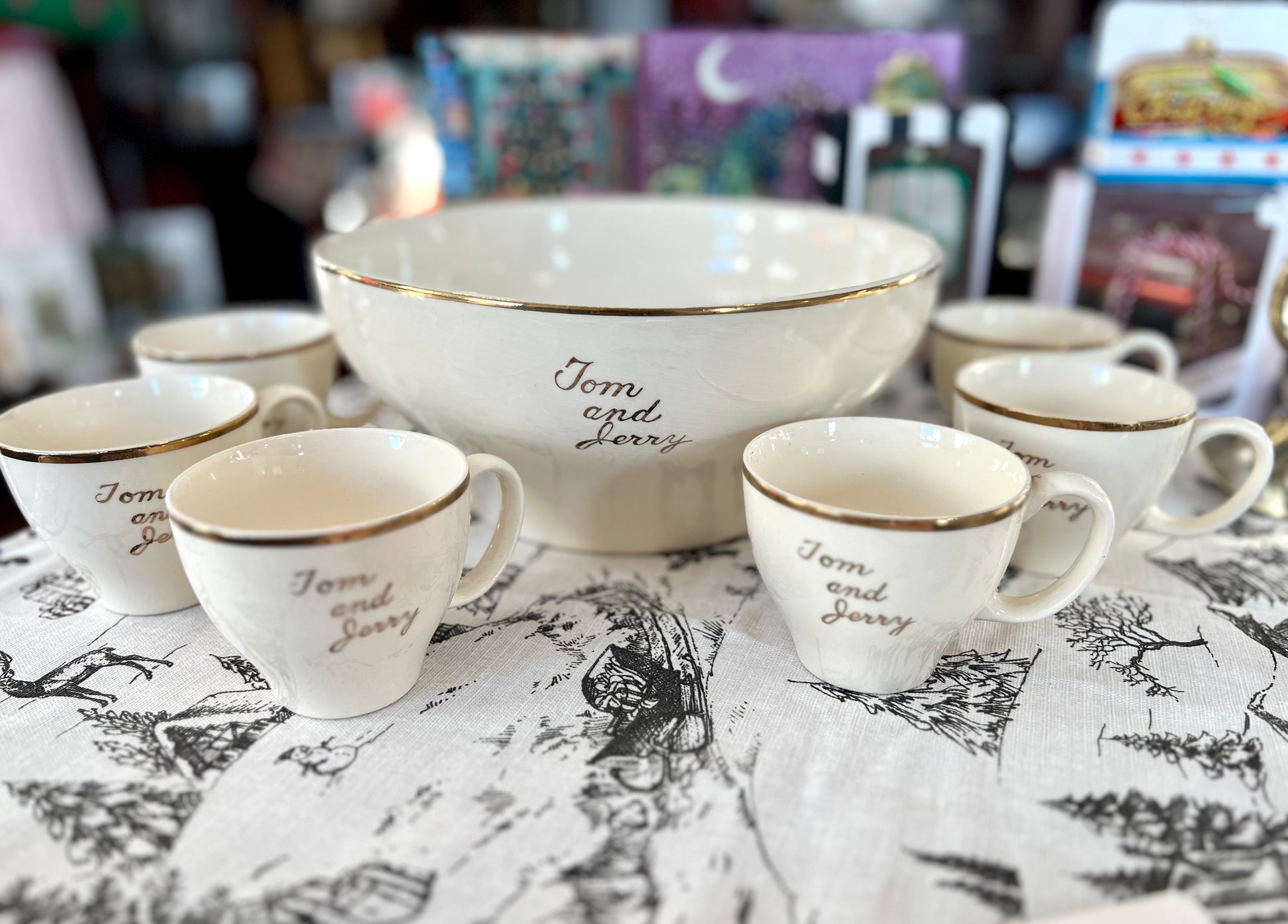 Vintage Tom & Jerry 22 Carat Gold Punch Bowl & Cups Set